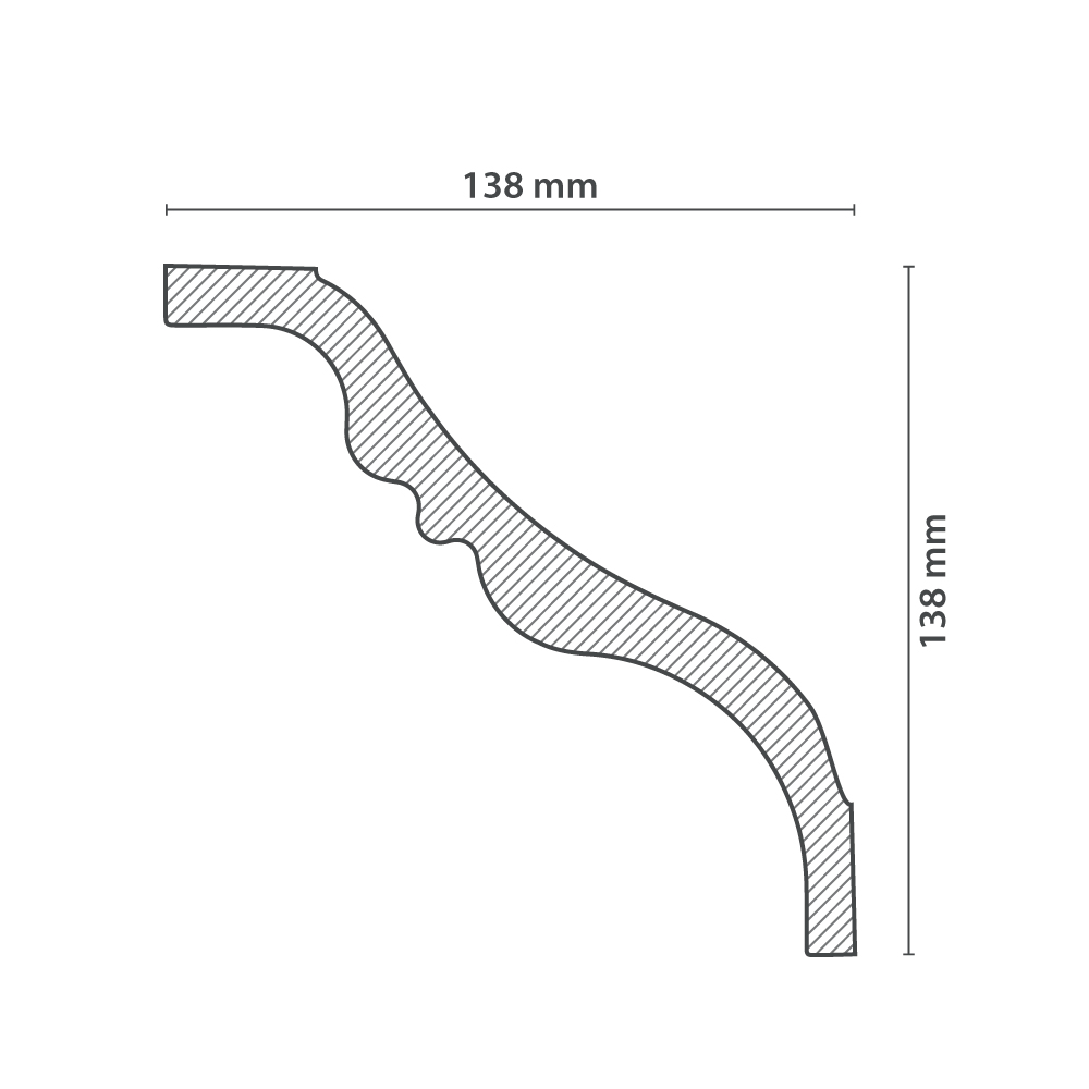 Perfil da linha Modern modelo UP237 produzido em XPS (Poliestireno Extrudido), com cerca de 60 kg/m³ de densidade.